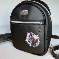 Vnitřní kapsa a vnější na zip s obrázkem černého koně.